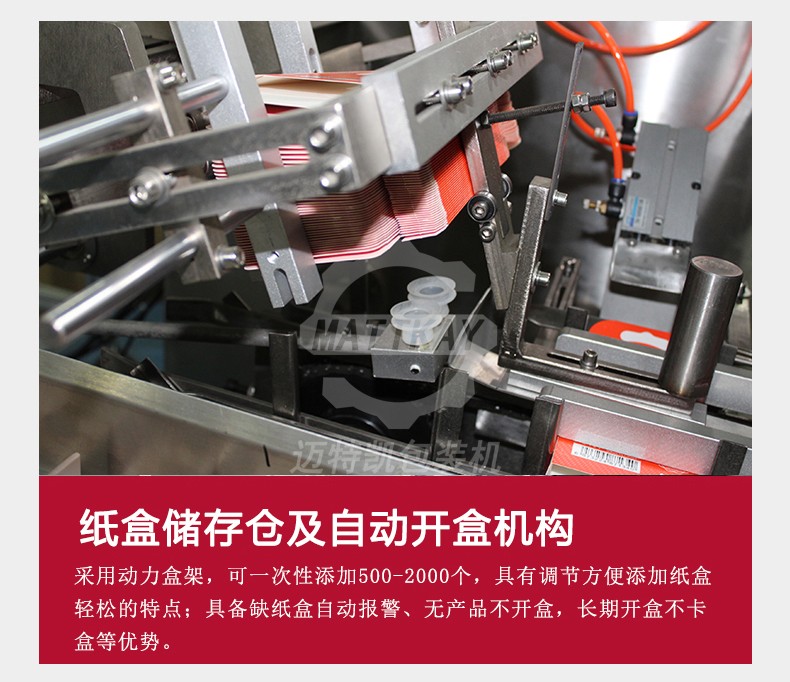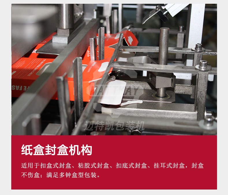 邁特凱月餅裝盒機(jī)借助于PLC控制系統(tǒng)和步進(jìn)電機(jī)精確定位,利用氣缸帶動(dòng)真空吸盤手、推料手臂、折盒軌道等組成一個(gè)自動(dòng)開盒、裝盒、封盒系統(tǒng)。提高了生產(chǎn)效率,節(jié)約大量的勞動(dòng)力,降低企業(yè)成本,使企業(yè)的自動(dòng)化程度再次提升,帶來(lái)較高的經(jīng)濟(jì)效益。解決很多月餅生產(chǎn)廠家人手短缺、工人易疲勞、勞動(dòng)強(qiáng)度大、手指易受損傷,直接接觸食品,帶來(lái)食品安全衛(wèi)生問(wèn)題。
